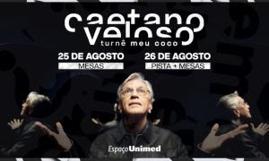 O Espaço Unimed, uma das principais casas de shows do Brasil, traz à São Paulo mais duas grandes apresentações de um dos maiores artistas do país, Caetano Veloso. O baiano apresenta a tour “Meu Coco”, em dois formatos especiais: na sexta, dia 25 de agosto de 2023 (mesas) e no sábado, dia 26 de agosto de 2023 (pista + mesas).