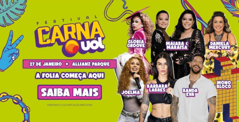 O line-up do CarnaUOL contempla diversos gêneros musicais, como Pop, Axé, Forró, Sertanejo e Funk, e conta com a confirmação de Maiara e Maraisa, Joelma – que convida a banda Olodum -, Gloria Groove, Daniela Mercury, Banda Eva junto de Jammil, Bárbara Labres e Monobloco.