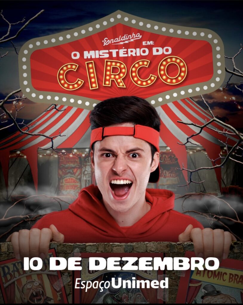 Após uma apresentação esgotada e muitos pedidos de replay, Enaldinho está de volta ao palco do Espaço Unimed, com o espetáculo “Mistério do Circo”, onde já se apresentou em abril deste ano.