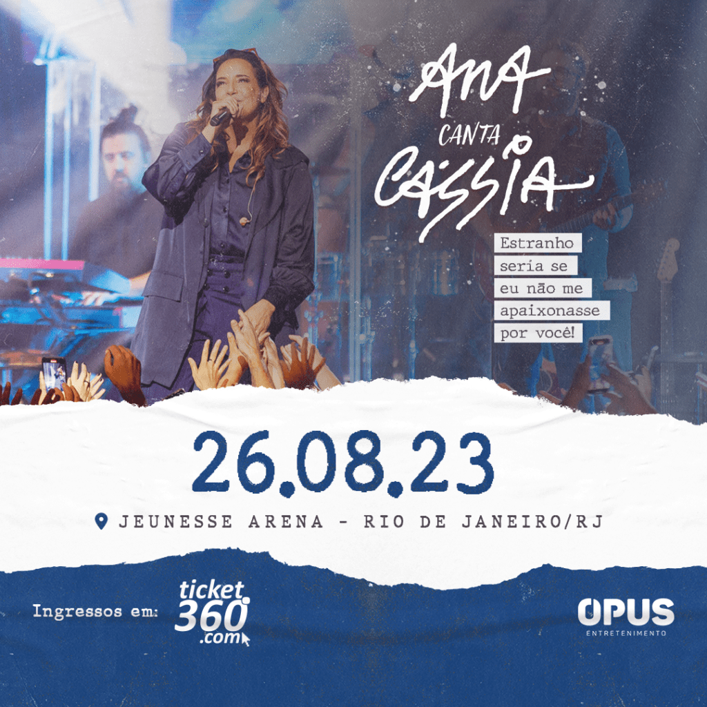 A Jeunesse Arena, na Barra da Tijuca, recebe, no dia 26 de agosto, a cantora e compositora Ana Carolina, com a turnê inédita “Ana canta Cássia – Estranho Seria Se Eu Não Me Apaixonasse Por Você”.