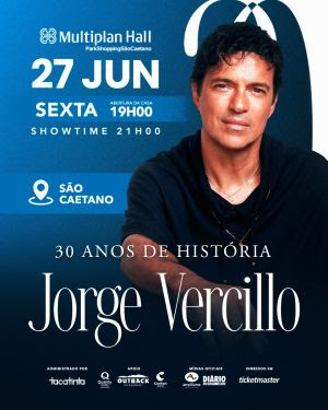 O Multiplan Hall – Park Shopping São Caetano, uma das melhores casas de shows, eventos e espetáculos, localizada no coração do ABC, apresenta nesta sexta-feira, dia 27 de junho , grande show comemorativo de Jorge Vercillo.