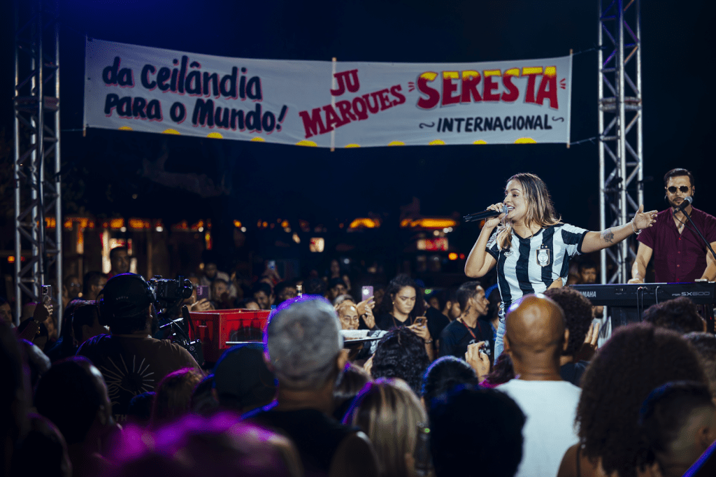 “Seresta Internacional” é a nova aposta de Jú Márques, considerada uma das vozes ícones da internet. O projeto foi gravado no dia 27 de março, na Feira Central de Ceilândia, no Distrito Federal, e contou com a presença do público aberto, criando um cenário descontraído. O audiovisual possui oito regravações internacionais, dentre elas a clássica “I Will Survive”, e quatro nacionais, como a icônica “Garçom”, de Reginaldo Rossi, reforçando a conexão de Jú com a seresta.