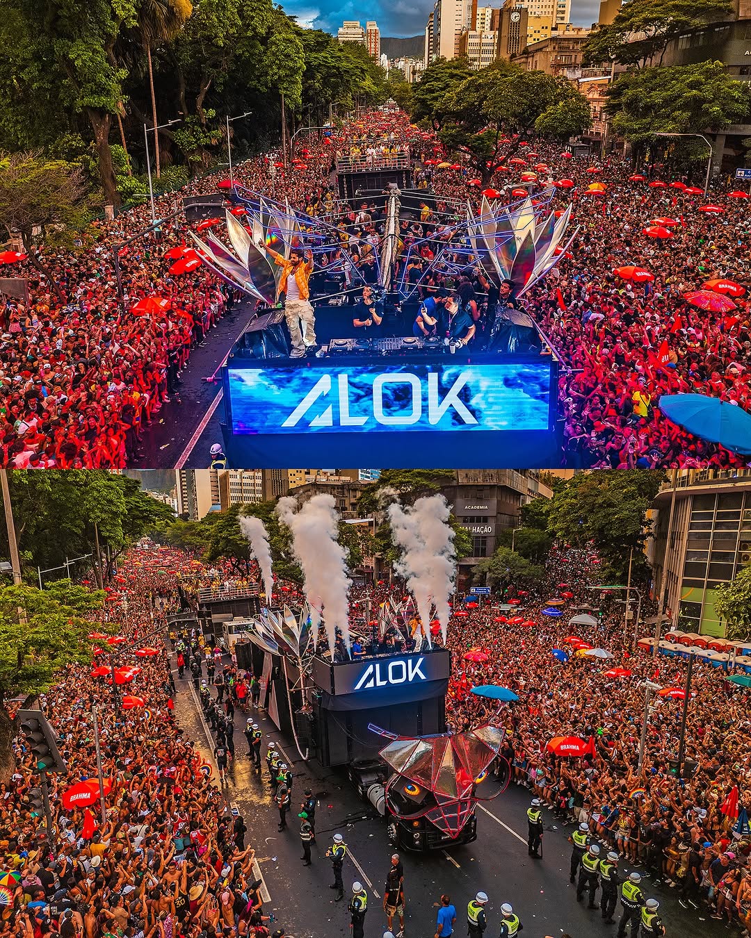 Histórico! Alok reúne um milhão de pessoas aproximadamente e estabelece recorde no carnaval de Belo Horizonte. No final da tarde de terça-feira (04), a Pipoca do Alok estreou nas ruas da capital mineira e se consagrou como o maior bloco de todos os tempos.