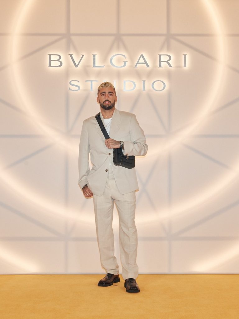 Com joias da marca anfitriã do evento e um terno e calça minimalistas na cor areia, o Campeão de Ondas Gigantes visitou pela 1ª vez o país a convite da Bulgari, sua patrocinadora oficial, e pôde conferir de perto o projeto que é um coletivo internacional, onde designers e criadores digitais, exploram um novo relacionamento com a Bulgari, através de colaborações digitais e físicas.