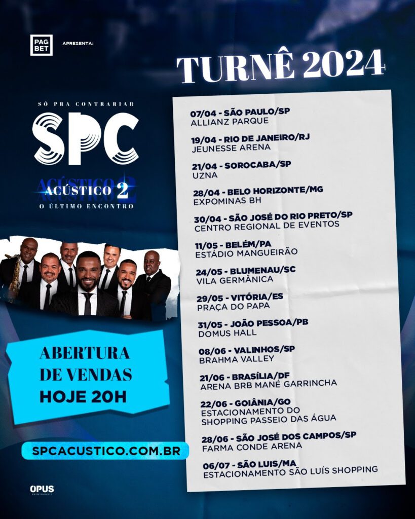 Mais informações sobre a venda de ingressos estão disponíveis exclusivamente emhttps://spcacustico.com.br.
