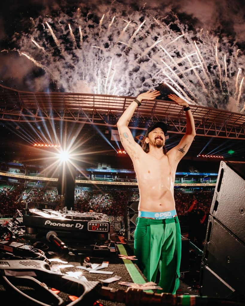 Durante seu set, Aoki empolgou o público com seu icônico momento “Cake Face”, quando arremessa bolos para a plateia, criando uma atmosfera de festa inesquecível. Ele também recebeu a Banda AL9 no palco para tocar o remix de Chama de Amor, elevando ainda mais a energia da noite.